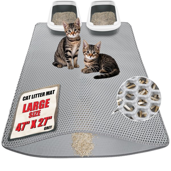 Zyusora Large cat Litter mat, Jumbo Size (47" x 27") Gray, Double Layer, Waterproof, Odor-Free, Easy to Clean