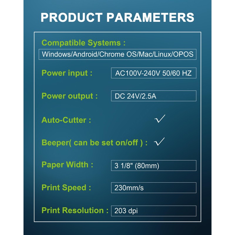 • After-sales service: We provide the POS receipt printer installation manual and video on a USB flash drive. If you have any questions about the compatibility of the printer with your POS system, please feel free to contact us for product suitability