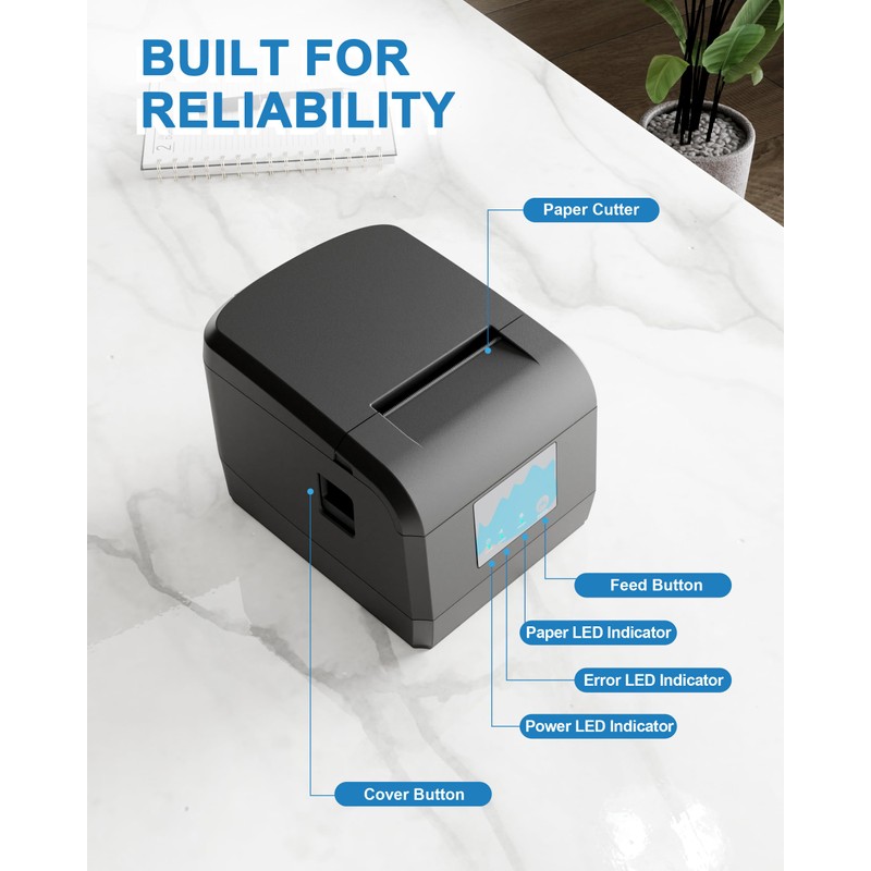 • Wide application: The thermal 80mm receipt printer is ESC and POS compatible and is ideal for a wide range of industries such as small businesses, retailers, apparel, food and beverage, courier logistics and banks, as it meets the need to print a diverse range of receipts