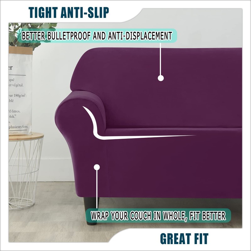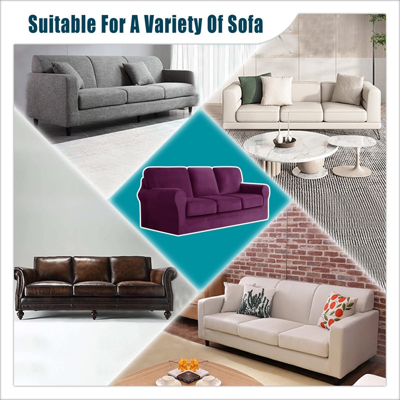 ZYXFYY 7 Piece Stretch Velvet Ektorp Sofa Covers, for 1 Base Cover, 3 Cushion Couch Cover and 3 Backrest Cover, for Living Room Furniture (Purple,3 Seat 7 PCS)