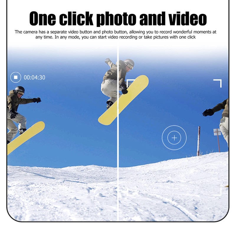 • ONE CLICK PHOTO AND VIDEO: The camera has a separate video and photo , allowing you to record wonderful moments at any time. In any mode, you can start video recording or take pictures with one click。