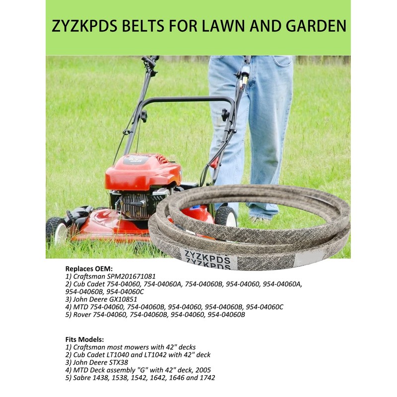 - ⭐Heavy-Duty Mower Deck Belt Replaces for John Deere, Sabre GX10851; for Cub Cadet / MTD / Rover 754-04060, 754-04060A, 754-04060B, 954-04060, 954-04060A, 954-04060B, 954-04060C; Craftsman SPM201671081.