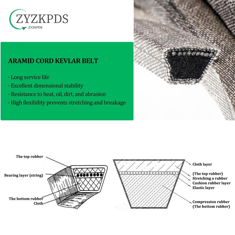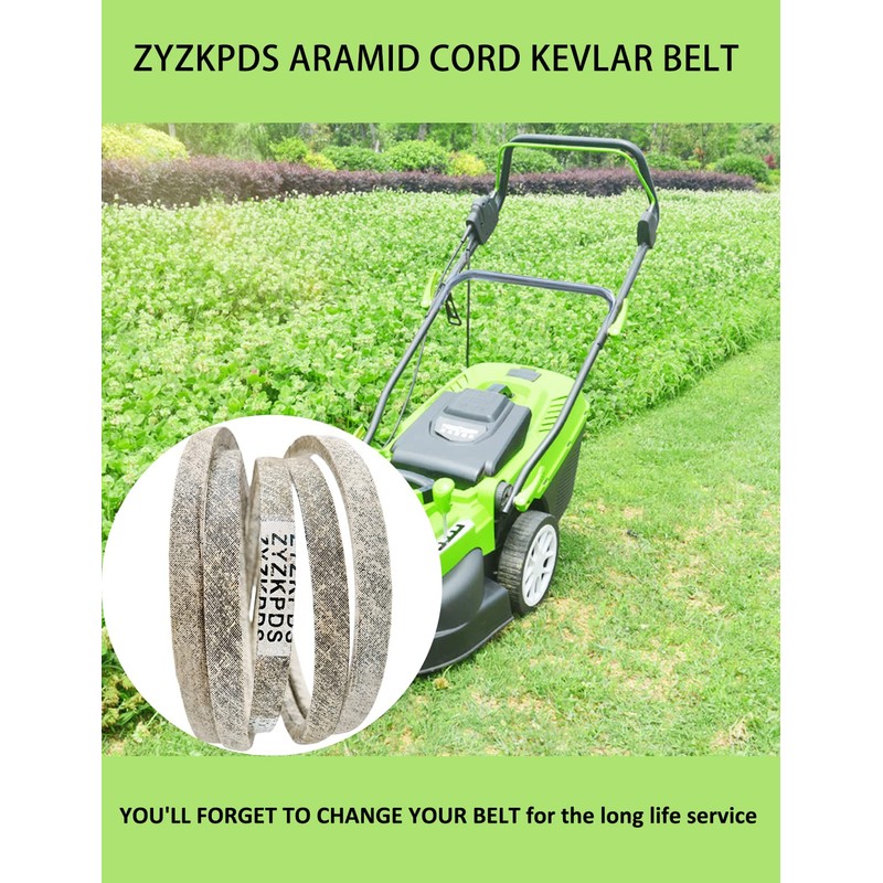 Upgrade your mower's performance with ZYZKPDS' premium Kevlar belt. Made of Aramid cord ensures reliability and durability with exceptional strength and resistance to stretching, heat, oil, and abrasion. Designed for high flexibility prevents stretching and breakage, offering excellent performance for lawn and garden equipment. Order now and enjoy worry-free mowing season after season!