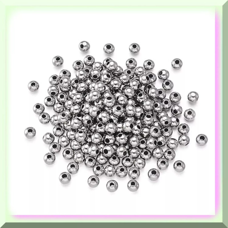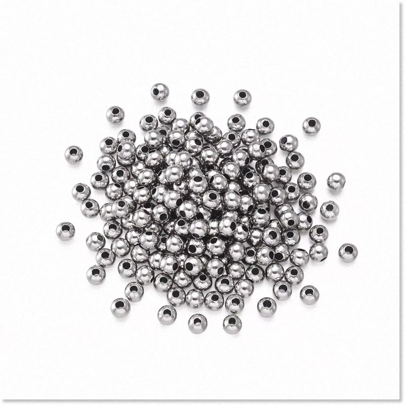 Introducing our 304 Stainless Steel Beads, perfect for all your beading, hat making, hair crafts, jewelry making, kids' crafts, and macrame projects. These round stainless steel beads come in 3mm with a 1mm hole, making them versatile for various crafting needs. Our designer stainless steel accent beads are hypoallergenic and non-tarnish, ensuring long-lasting quality for your creations.