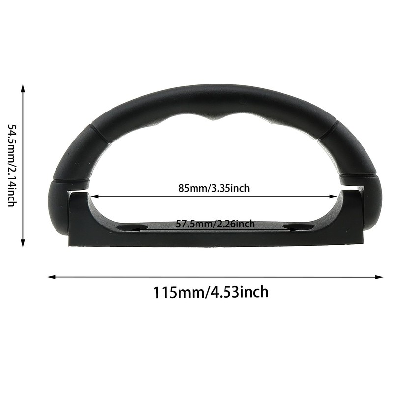 - The overall length of the handle is 115 mm (4.53 inches), the inner diameter of the hand grip is 85 mm (3.35 inches), and the distance between the mounting holes is 57.5 mm (2.26 inches).