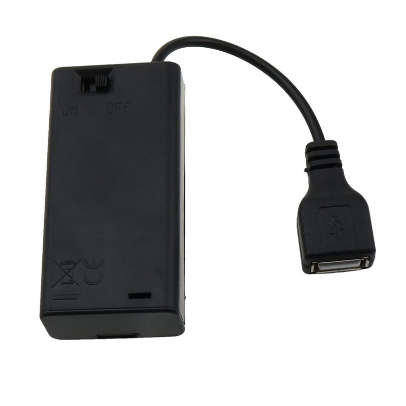 ZZHXSM Soporte de batería AA USB hembra 2 ranuras AA caja de batería puerto USB fuente de alimentación caja de batería con interruptor de encendido y apagado y cubierta, 2 x 1,5 V