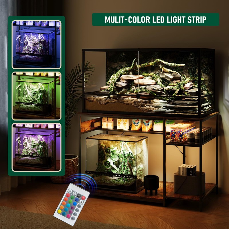 • Power Supply and LED Light: The aquarium stand includes a power strip with 3 AC outlets and 2 USB ports to power your aquarium circulator, oxygen pump and more. Featuring multiple colors and modes, the LED light strip creates a visually appealing ambience.