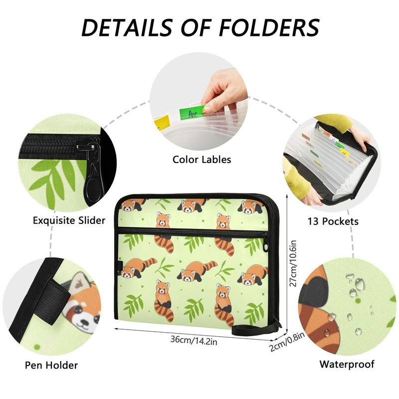 - 【Unique Image Design & Multipurpose】With the Cute Red Panda and Bamboo unique image printed on the file folder, you will be the most eye-catching one on the school or office. It is different with the other solid color file folder, it shows your stylish and taste. Also the file folder keeps your holiday documents, vouchers, cards and coupons neat and orderly. It is the perfect document organizer for home, office, school use and travel, simple and stylish.