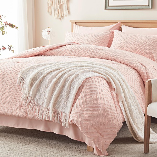 - TUFTED DESIGN: Our full size comforter set adopts fashion tufted and design which can add some minimal-boho to your bedroom. and the stitches will not loose after washes.