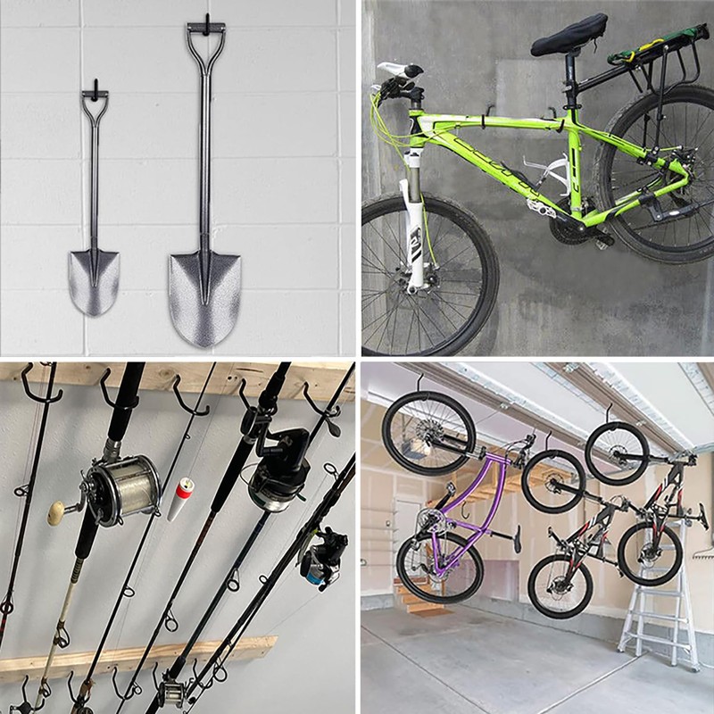 - Widely used: great for organizing all types of bikes. Can also be used for power recreational equipment, furniture, lawn garden tools hose, storage, garden and more. Hang all household items and keep your garage and home organized. Say goodbye to any mess in your garage.