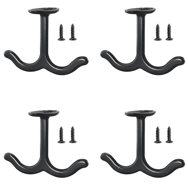 ZZLZX 4PCS Zinc Alloy Double Hooks 8 Screws Ceiling Suspension Ceiling Hooks 3x2.2x1.8 inch for Cabinet Wardrobe Towel Jacket Hat Coat Black