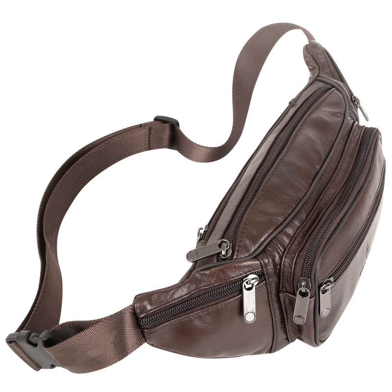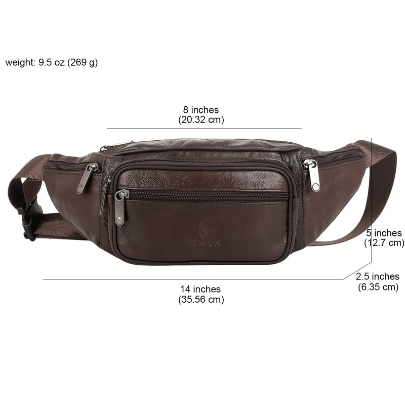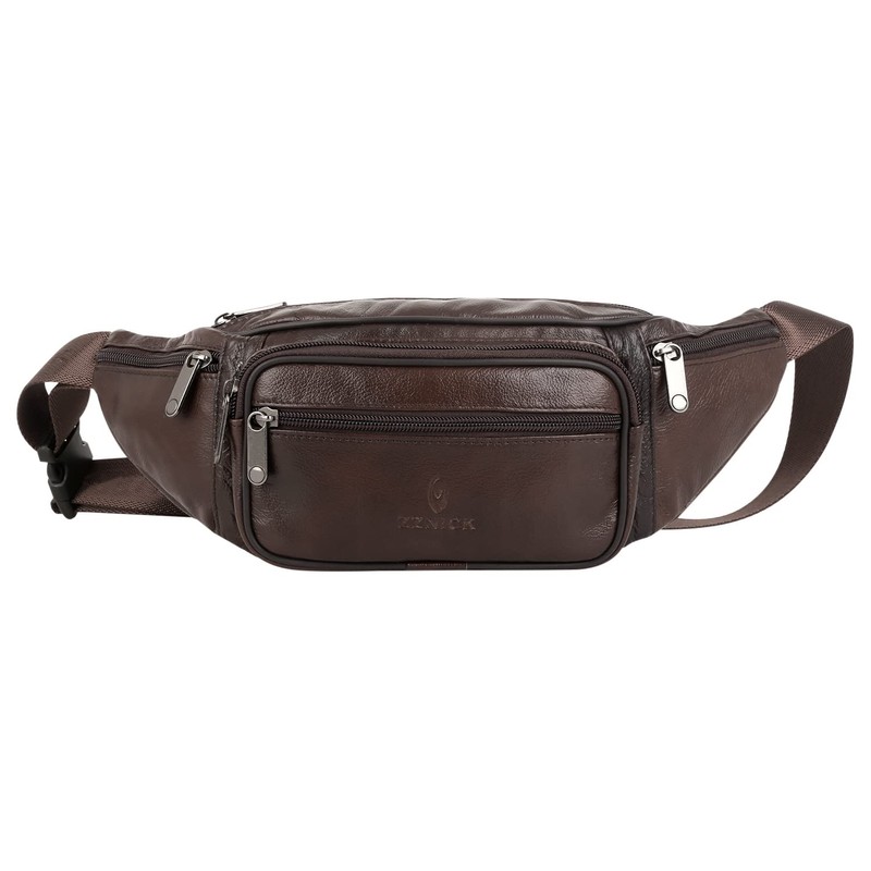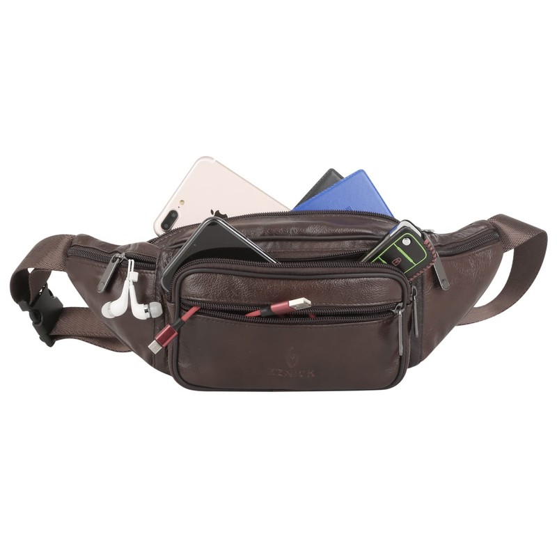 ZZNICK Genuine Leather Fanny Pack/Waist Bag/Organizer with Adjustable Belt, Multiple Pockets Waist Pack (Brown-861)