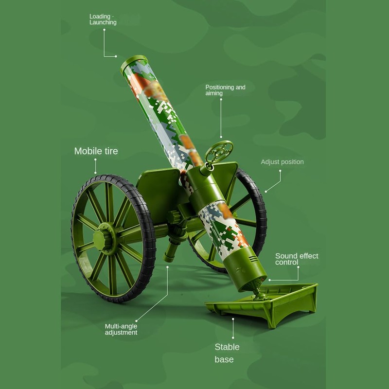 - Barrel height and projectile launch angle can be freely adjusted, 360 degree rotation, support fixed, solid bombardment, perfect for outdoor play
