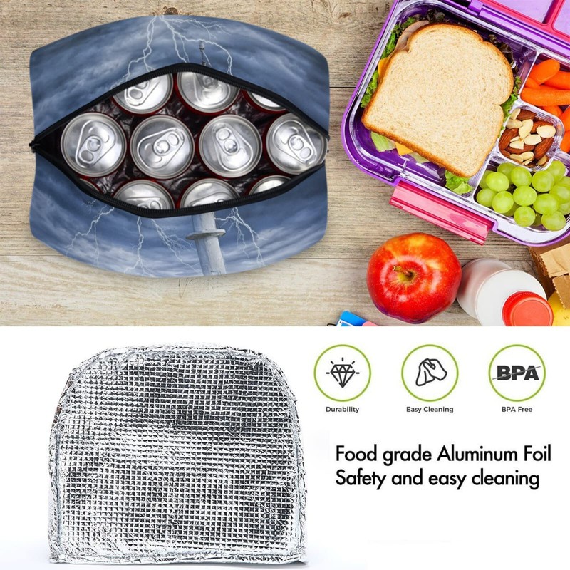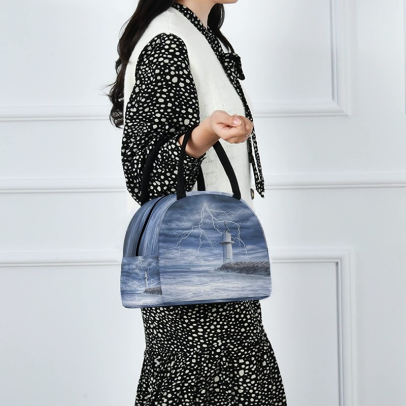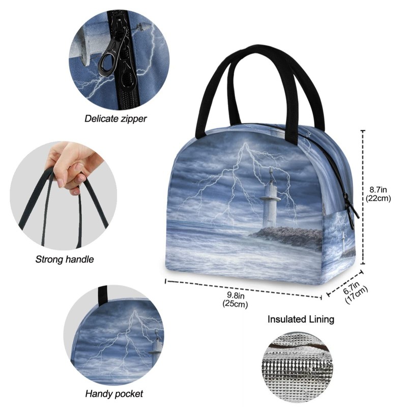ZzWwR Ocean Thunderstorm Lighthouse Reusable Lunch Tote Bag Insulated Thermal Cooler Container Bag for Back to School Work Picnic Travel Fishing Beach
