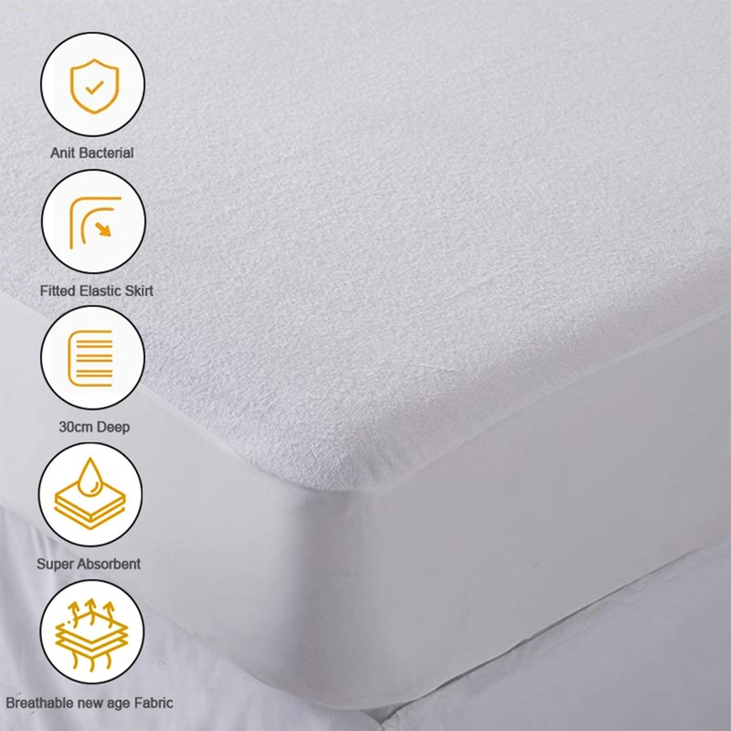 - Cotton Terry Surface With Polyurethane Back Coating (Waterproof, Noiseless and Breathable)
